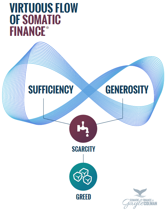 Money is a charged experience, for better or worse. Attention to money typically lives outside our bodies. Automatically, habitually, our attention moves to the exterior, when we focus on our money things: paying bills, buying a car, preparing tax returns, filling out forms, creating a budget, watching the market move up and down... these money things can feel endless. How often do we pay attention to our bodies in these experiences?